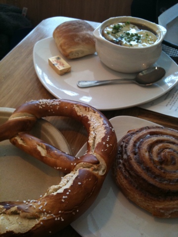 Swiss Bakery: Springfield, VA By Mj February 10, 2012 restaurants Second time at Swiss Bakery in two days. I may have a problem. A sweet, scrumptious, yummy problem. Friday’s soup of the day, French Onion Soup with snowflake roll, pretzel, and cinnamon danish. Share this: Click to share on LinkedIn (Opens in new window) LinkedIn Click to share on Facebook (Opens in new window) Facebook Click to share on Pinterest (Opens in new window) Pinterest Click to email a link to a friend (Opens in new window) Email Click to share on Reddit (Opens in new window) Reddit Like Loading... Related