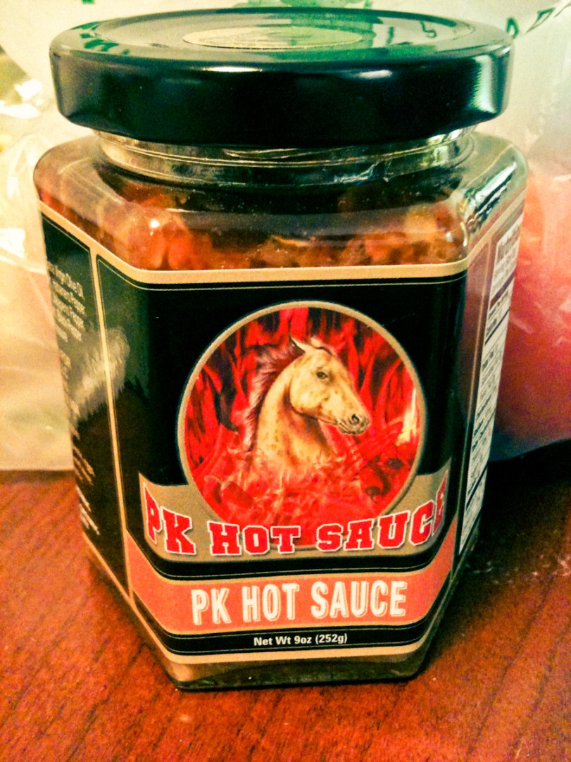 It. was. great. I have added it to other sauces like salsa or soy sauce, and it’s great with fish and chicken. I spoke with the guy who makes it and he says he adds 9 different kinds of peppers. Be warned – it’s super spicy, but bearable. He makes a product that is even spicier, with ghost peppers!