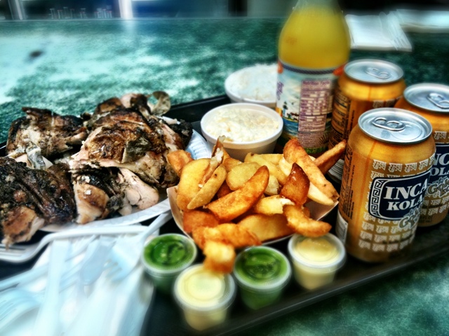 To say the least, this place is very low key. I think I was even sitting on a mismatched lawn chair if I remember correctly. But the food…oh the food! The chicken has a nice grilled flavor on the outside and nice and tender on the inside. The fries were ok, but I think fried yucca would have been better. The rice had a hint of lime and cilantro, and probably cooked in chicken stock. Perhaps the most exciting thing, according to my 8-year-old was getting her own can of Inca Kola, which she describes as, “fruity and watermelony.”