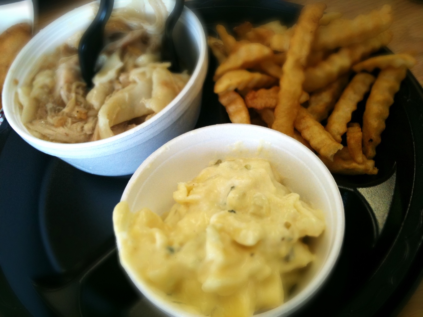 Inside was an interesting mix of locals, business people and truckers. I wasn’t in the mood for anything too meaty so I ordered three sides: Fries, potato salad and chicken & dumplings (cause if it’s on the menu, it’s going on my plate).