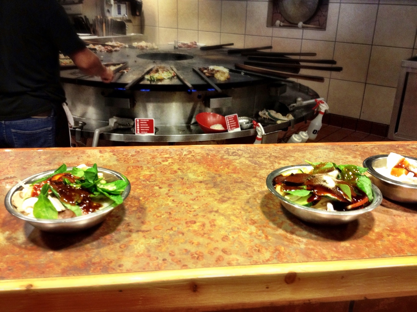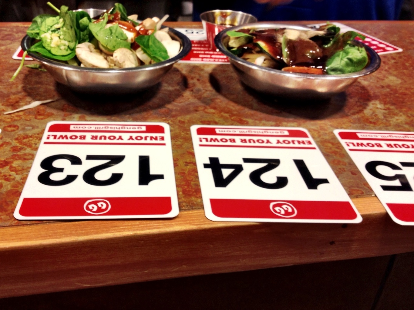 They’ll give you a number for each of the bowls, so the servers will know where to deliver the bowls to. Put the number on your table, and wait…