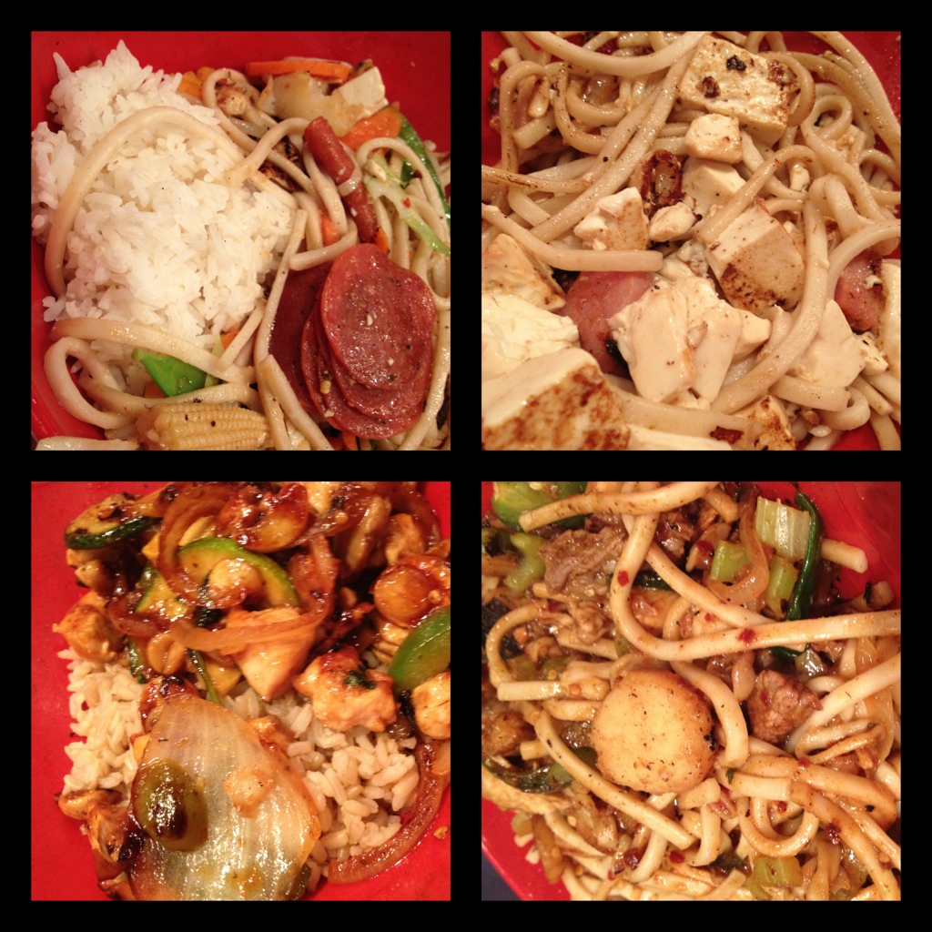 So now, here we are at Genghis Grill and I’m trying not to have flashbacks of our last Mongolian BBQ experience. The price was around $9 per person, less for kids. Ok, this is doable.