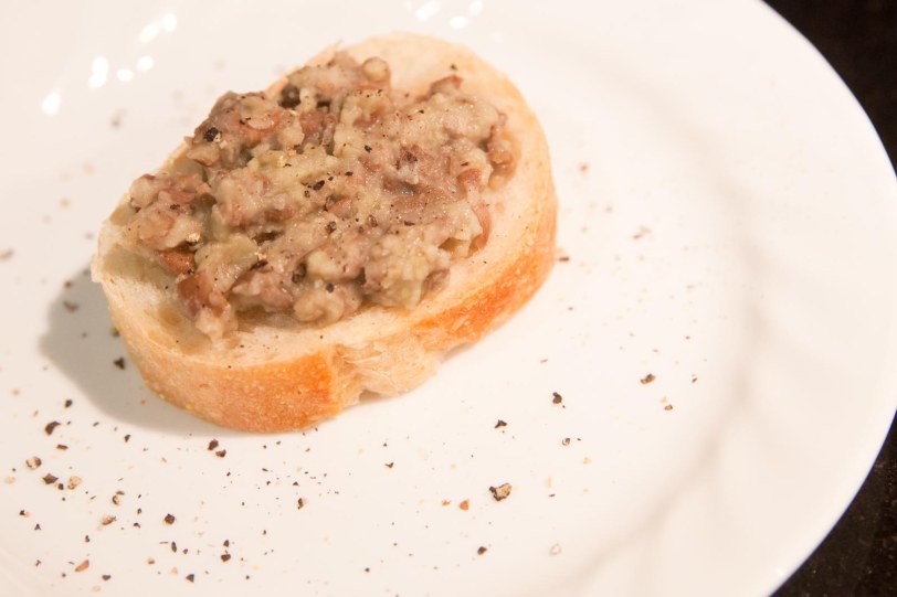 I spooned the mixture on a slice of french bread! This is obviously not for the garlic haters (half of the dip was GARLIC!). But don’t worry, it’s not too “garlicy” as is the case when garlic has been boiled or roasted for a long time – it actually turns a little sweet and very buttery.