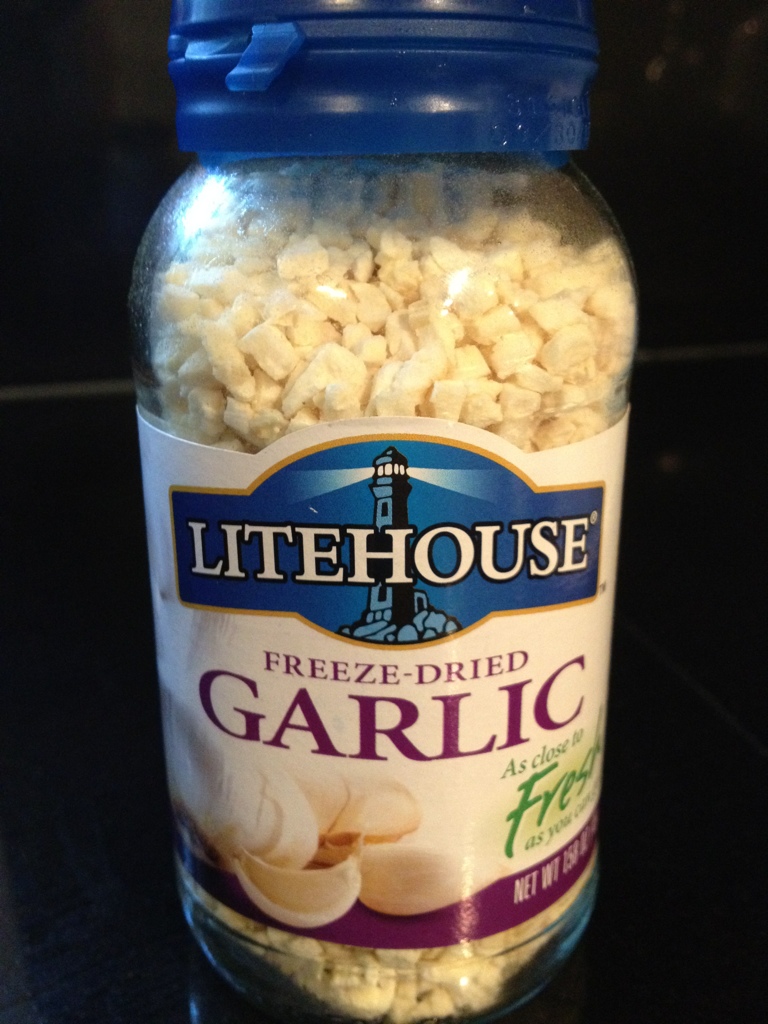 But what am I supposed to do with this jar of freeze dried garlic? Surely you can’t munch on these while doing homework, as my daughter does with the freeze dried strawberries?